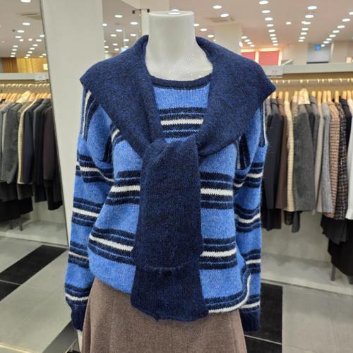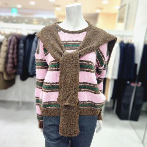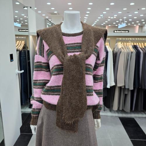 [KL]KKSPL2001 줄무늬어께숄셋트니트