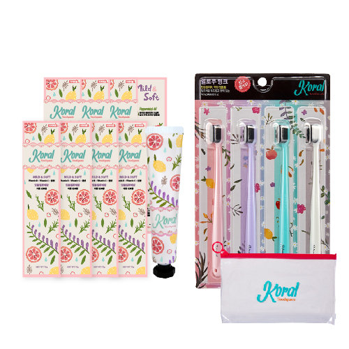 (론칭기념) 코랄 치약 안심 토탈케어 14종 세트(치약 9개 + 밍크모칫솔 4개 + 여행용파우치 1개)