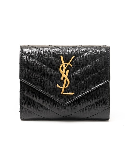 [생 로랑] 라프리마 [SAINT LAURENT] 생로랑 퀼티드 컴팩트 3단 모노그램 반지갑 403943-BOW01-1000