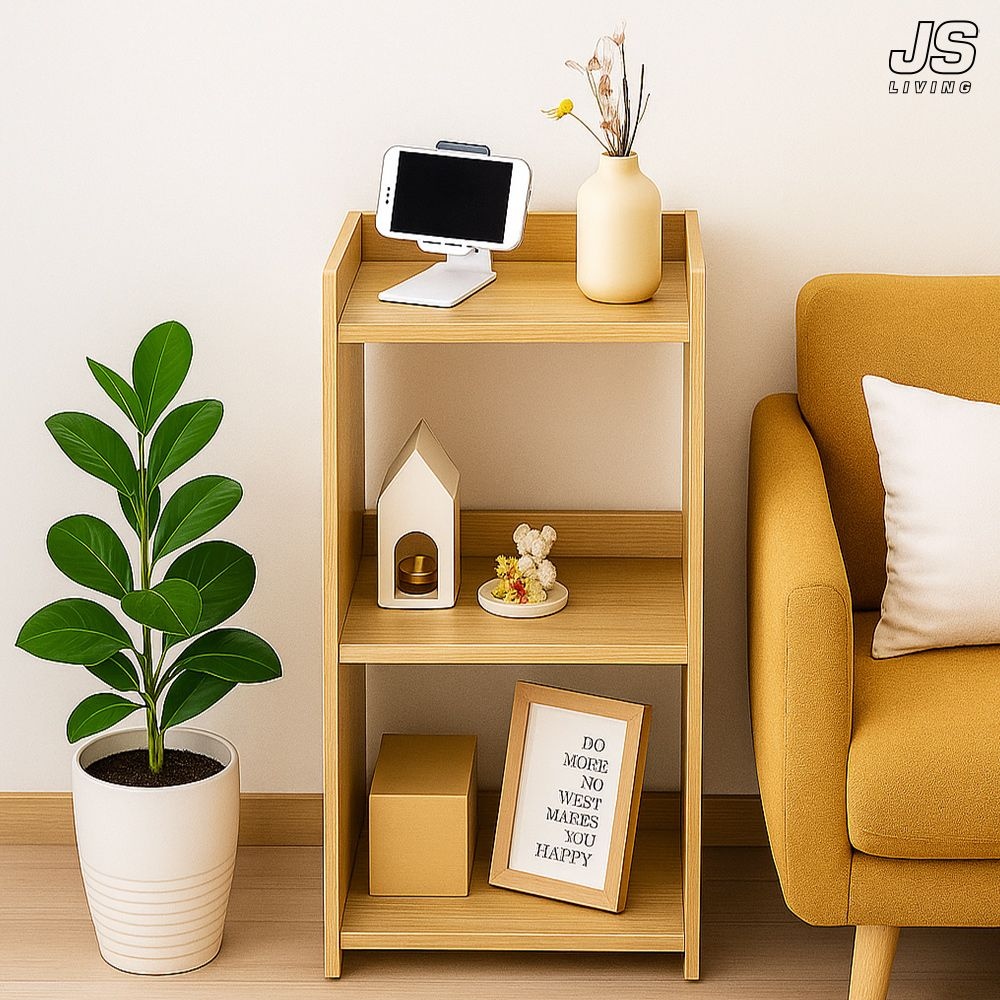 3단 슬림 오픈형 공간 박스 수납 선반 미니 책장 책꽂이 북선반 리빙박스 틈새 수납장 원목