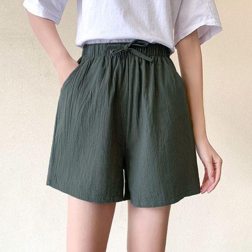 [셀럽하우스]여성 TOGE9086 여름 팬츠 밴딩 린넨 얇은 3부 반바지 시원한