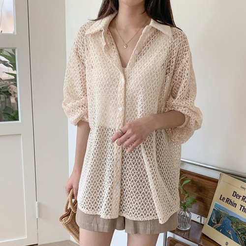 H스타일(DK)비치망레스NB 여름 여성 남방 셔츠 시스루 데일리 비치웨어 긴팔