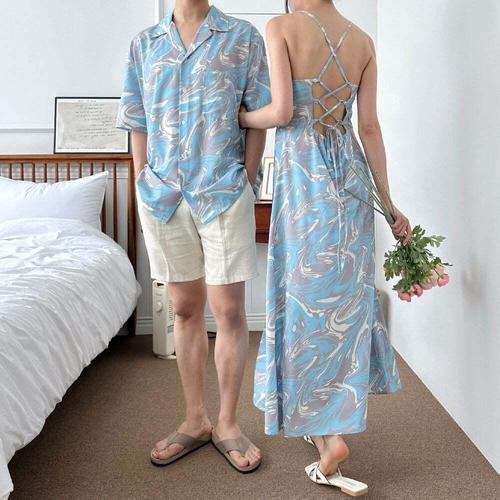 [셀럽하우스]웨이브디자인 SBBH5767 커플 비치웨어 썸머룩 셔츠 드레스