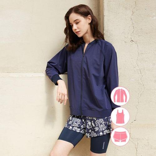[베이직 엘르]베이직엘르 여성인 펀칭 집업 비치웨어 3종SET BEL-V210N