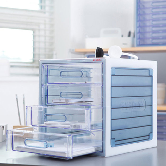 서류정리함 크리스탈 4단 서류함 블루