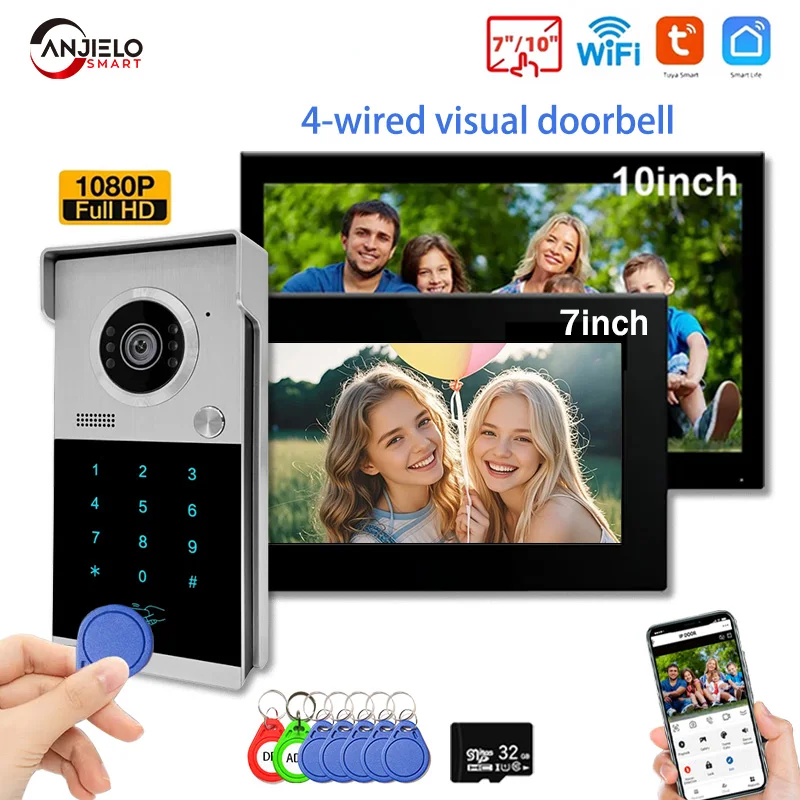 안지엘로 투야 스마트 메탈 도어벨 비디오 인터콤 시스템, 10인치 터치스크린, 4인치 1-락 안전 보호