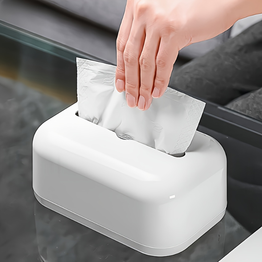 TEMU 세련된 화이트 티슈 박스 홀더 - 벽걸이형, 드릴 없는 디자인, 주방, 거실, 욕실용 - 내구성 있는 플라스틱, 광택 마감