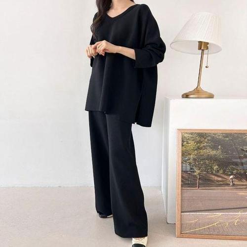 [셀러허브_여성트랜드패션]체형커버 브이넥 니트세트 상하의 여성 여자 30 40대