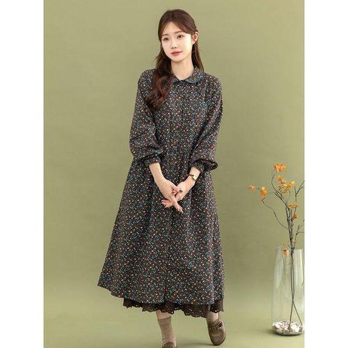 [비비진]캐주얼 편안한 중년여성 하객룩 봄 가을 40대 긴팔 허리밴딩 원피스