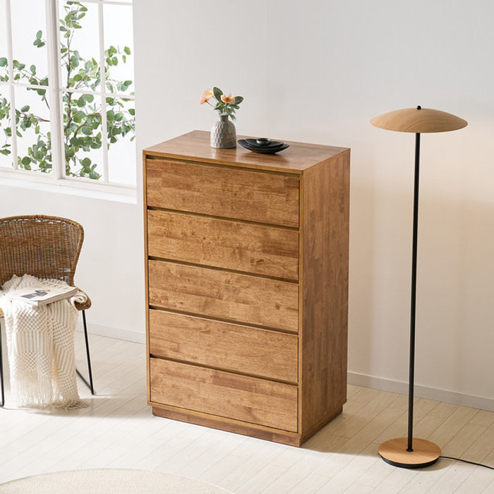히트가구 [착불배송 상세확인] G430 고무나무 원목 5단 서랍장 800 1color