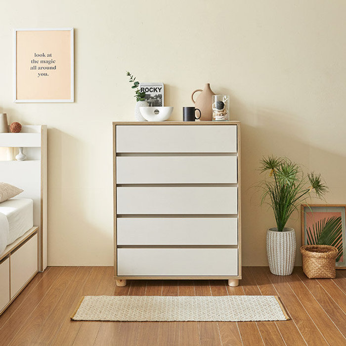 [보네드] 올리비아 5단 슬림 원목 서랍장 800 [착불유료배송]