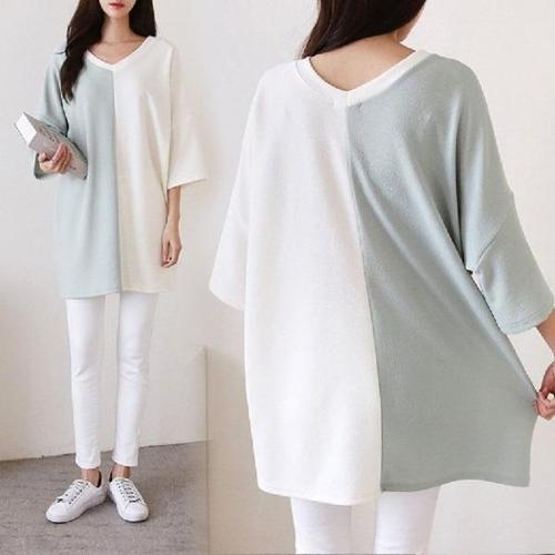 [엄지척]여성IL 하프브이넥5부롱 C834H 루즈핏 롱반팔티 롱티_19626218_667501