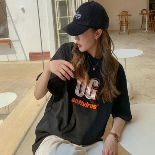 [엄지척]여성 루즈핏 레터링 5부 반팔 티셔츠 캐주얼티_19629638_667501