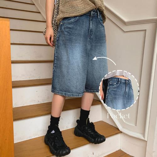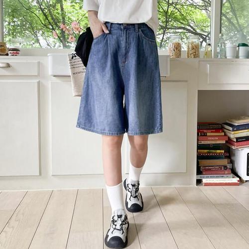 동대문스타일 여성 청반바지 카펜더 버뮤다 데님 팬츠 빈티지 워싱 여자 와이드 하프 데님