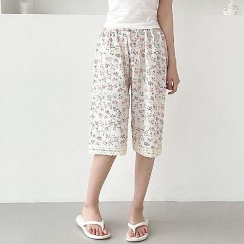 [다잇템]여성 꽃무늬 6부 실내복 레이스 팬츠