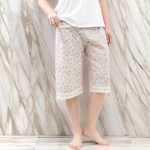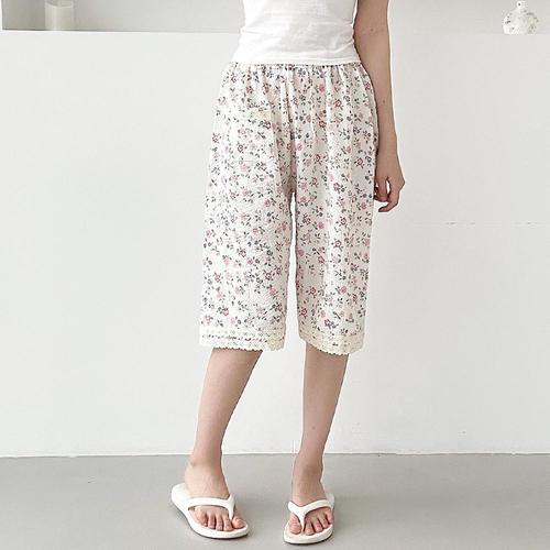[옷자락]여성 레이스 파자마 6부 플라워 홈웨어 팬츠