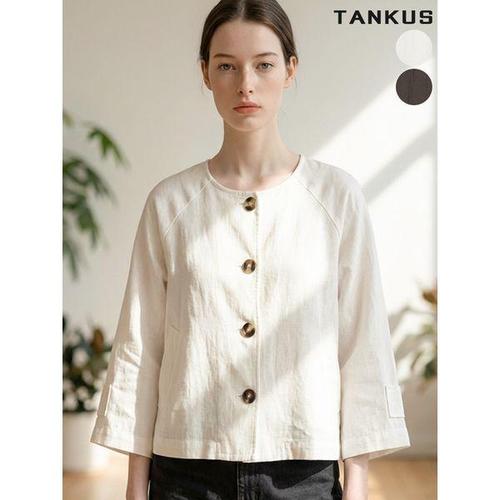 [탱커스]여성 린넨 찰랑 버튼업 7부 자켓