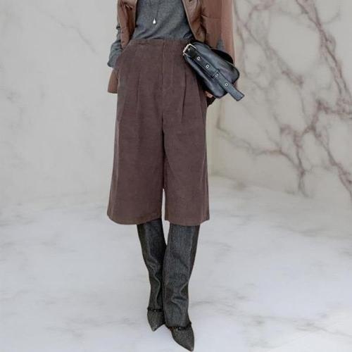 [다잇템_패션]여성 코튼 칠부 핀턱 골덴 버뮤다 팬츠