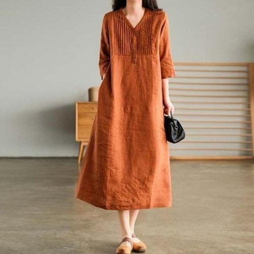 [엄지척]4컬러 코튼 면 린넨 여성 7부 소매 롱 원피스 MA8230_19912388_667501