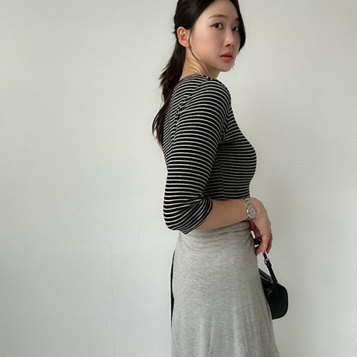 더클립 / 리브 스판 스트라이프 7부 티셔츠