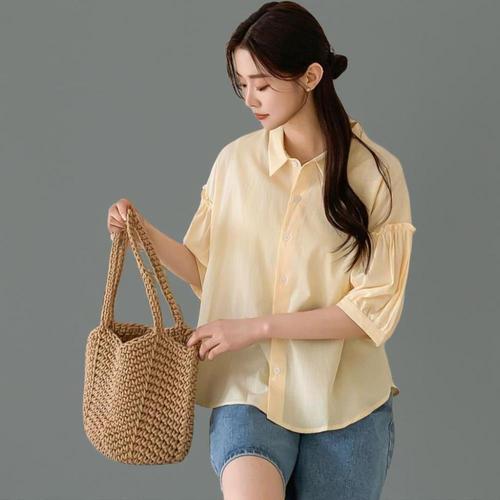 [옷자락] 여자 무지컬러 레이온 루즈핏 핀턱 7부 블라우스