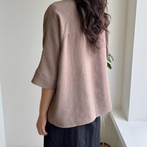 [신상오픈런]여성용 라운드넥 7부 블라우스 심플 빅포켓 레이온