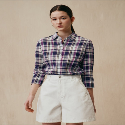 헤지스 여성 [스테디셀러][린넨100]네이비 체크 7부 셔츠 (WSSH5B304N2)