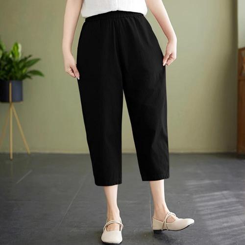 ORZQU 여름 여성 면마 와이드 솔리드 반바지 캐주얼 바지 7부 바지