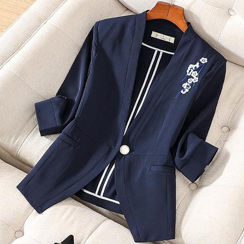 [패션시그널]플라워자수 노카라 7부소매 원버튼 자켓 9A8715