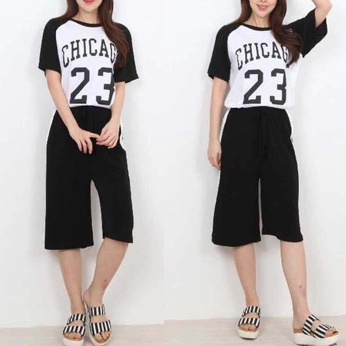 [릴룸]프렌치 7부티셔츠 + 와이드팬츠 세트