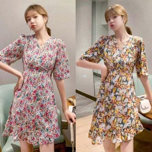 [셀럽하우스]화사한 NCKU3620 반팔 여성 포인트 패턴 플라워 원피스 7부