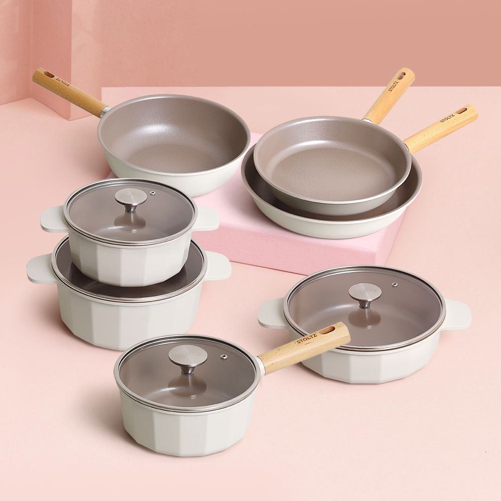 레트로 IH 인덕션냄비 7종 냄비세트+후라이팬 (핑크)