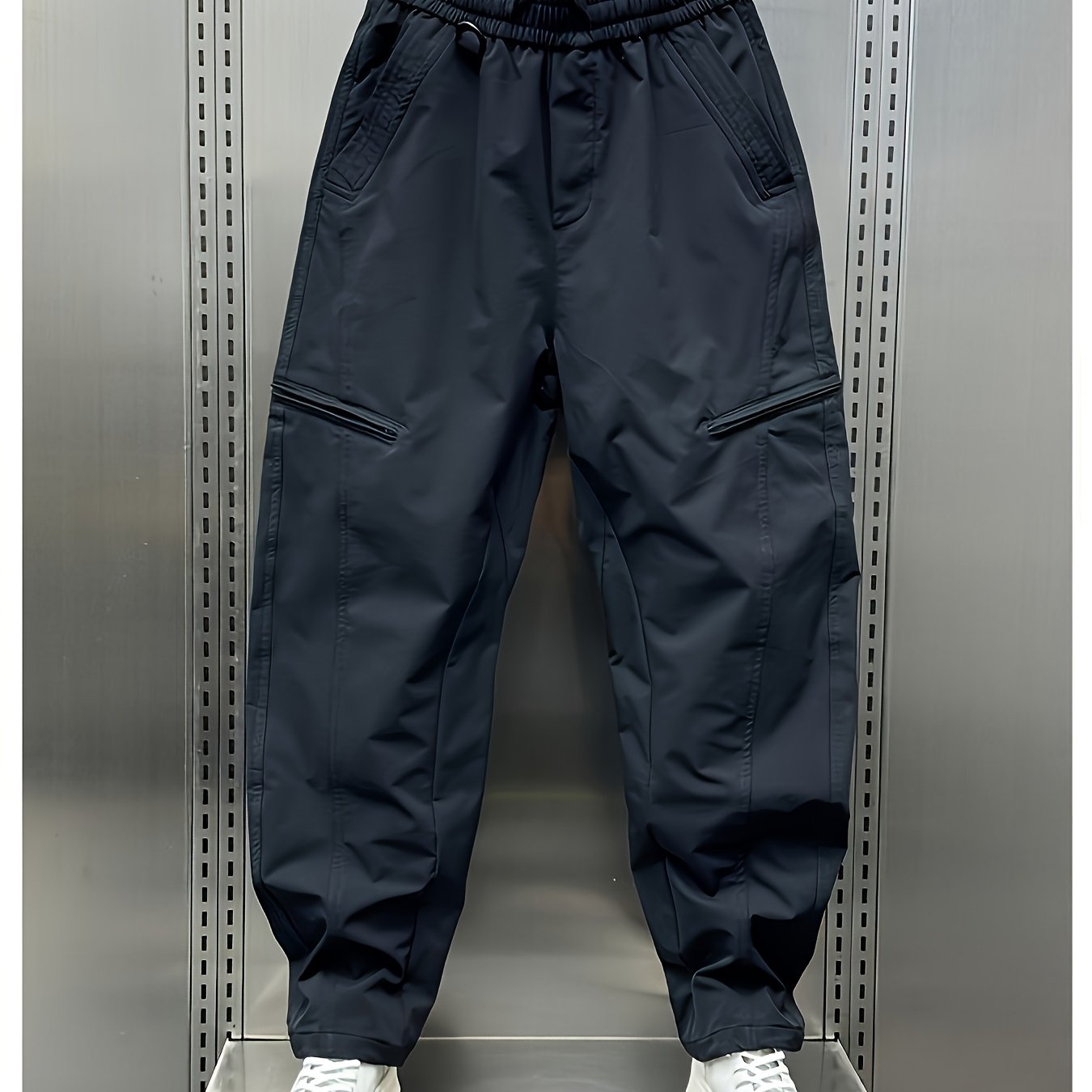 TEMU [1pc 플러스 사이즈 남성 캐주얼 카고 바지] 플러스 사이즈 남성 캐주얼 카고 바지, 폴리에스테르 100%, 단색, 정규 핏, 스트레치 없음, 모든 계절 스포츠 바지용 드로스트링 포함