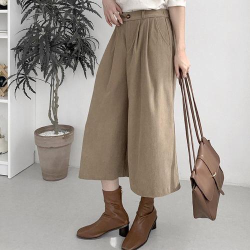 [옷자락] 여성 골덴 와이드 8부 팬츠 벨트 포함 가을용 밴딩 바지