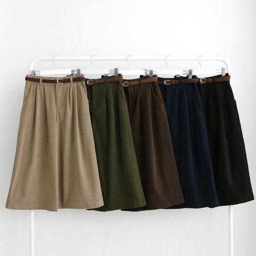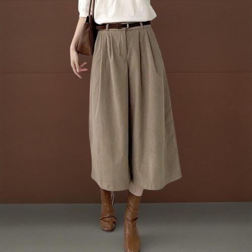 [옷자락]여성 골덴 와이드 8부 팬츠 벨트 포함 가을용 밴딩 바지