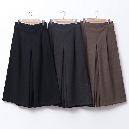 [다잇템]여성 와이드핏 보온 핀턱 백밴딩 8부 치마바지