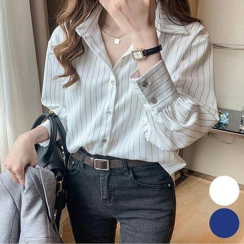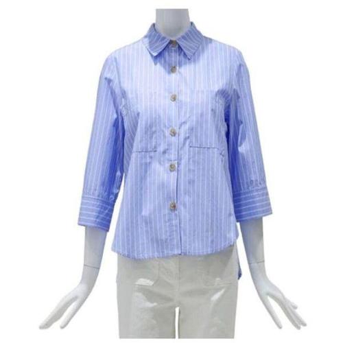 [셀러허브_여성트랜드패션]여자 셔츠 스트라이프 8부 남방 짧은 오피스룩 소매