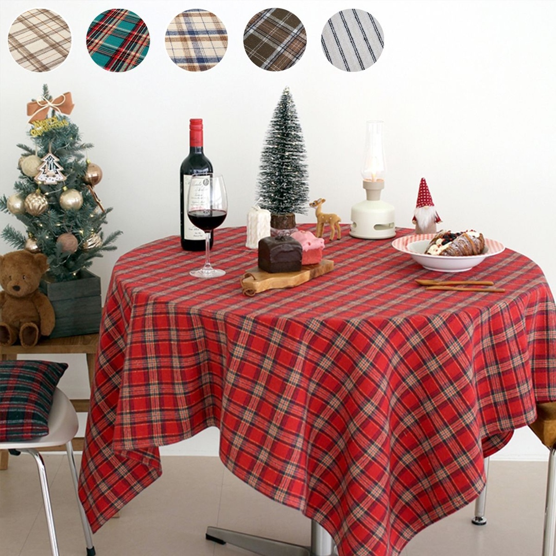 osshop 크리스마스 식탁보 140-140 체크무늬 테이블보