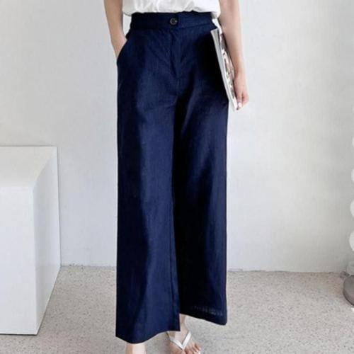 [에이치플러스몰]여성 여름 데일리 린넨 와이드 뒷밴딩 9부 팬츠 바지
