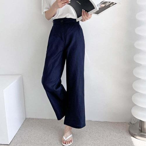 [셀럽하우스]9부 WNOZ7686 베이직 여성 린넨 통바지 올데이 1P 여름 데일리