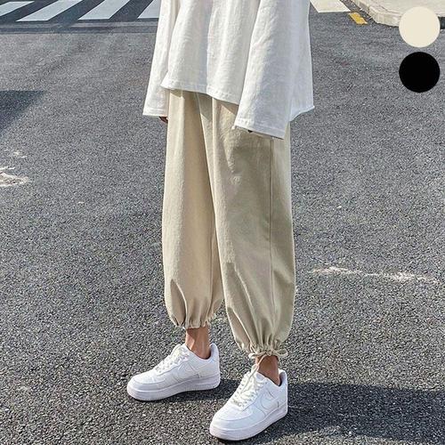 여름 일자 밴딩 와이드 남자 조거팬츠 스트링 9부 끈 WFLPUCF