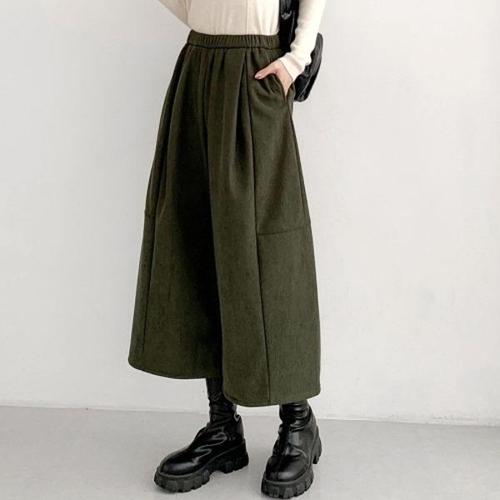 ZAJA 여성 와이드 팬츠 가을 겨울 두꺼운 캐주얼 모직 9부 바지