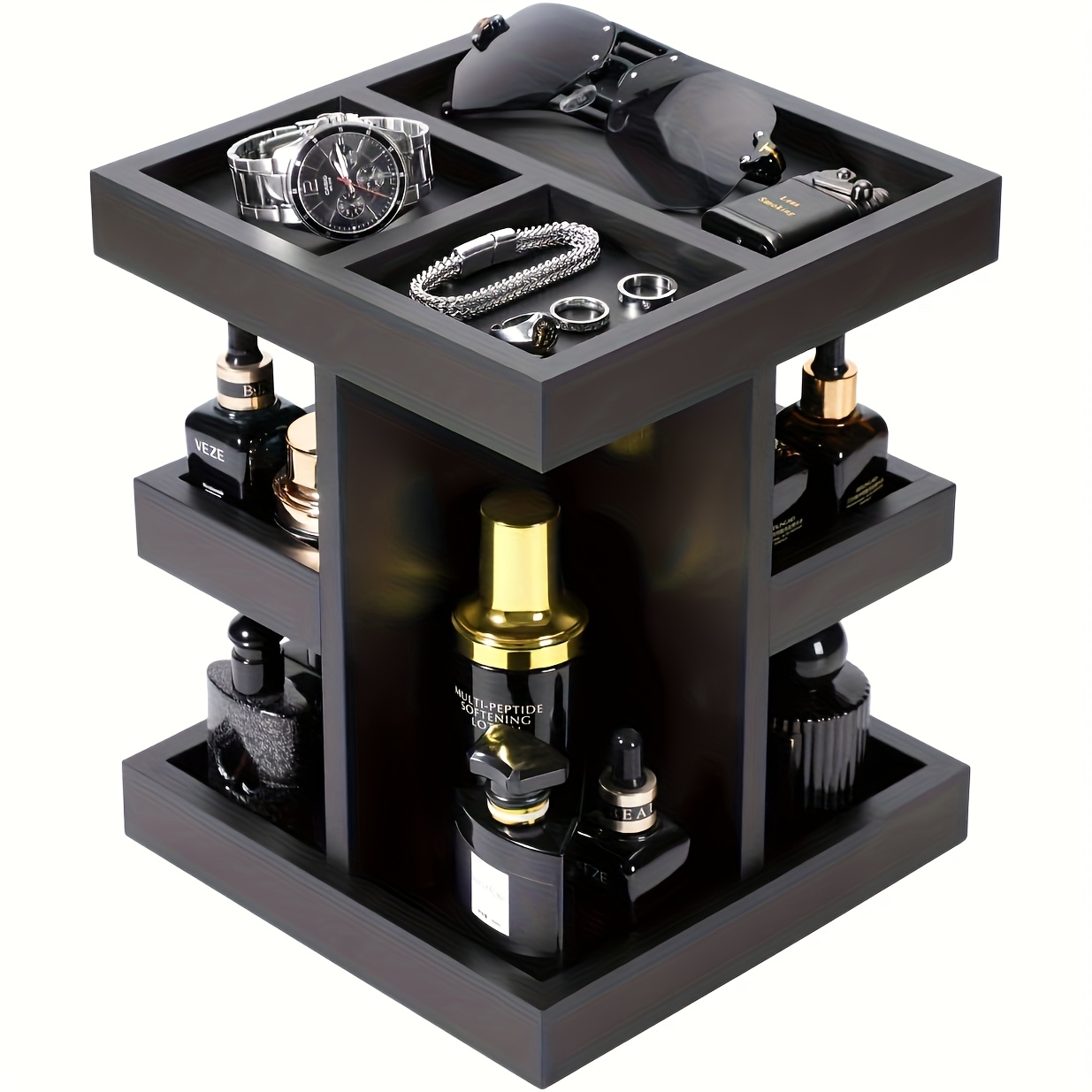TEMU 남성용 3단 대용량 회전형 코롱 정리대 & 향수 선반 - 골드 티어 선반, 블랙 마감 데스크/침대 옆 테이블 - 남편 생일/크리스마스 선물, 시계 & 보석 없이 접근 가능한 카운터탑 수납, 보석 타워, 디스플레이
