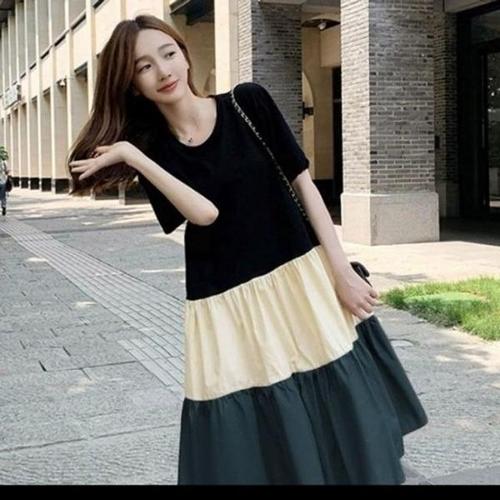 [엄지척]미디원피스 A라인 반팔 예쁜 배색 통 넓은 니트원피스_19871742_667501