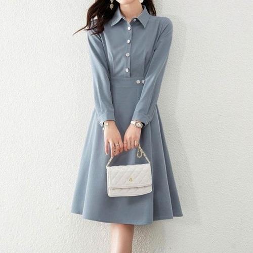 [엄지척]카라 큐빅 A라인 원피스 플레어 스커트 하객룩_19911052_667501