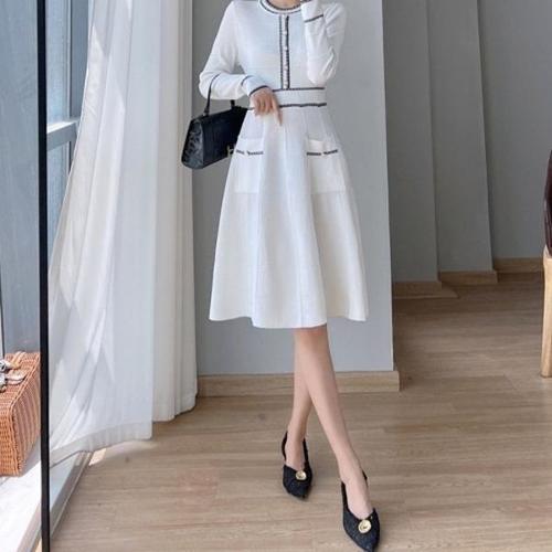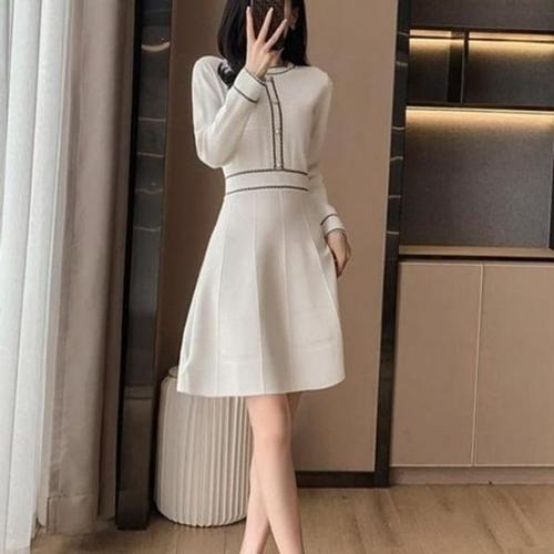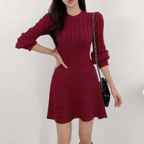 여성 로맨틱 라운드넥 A라인 플레어 골지니트 원피스