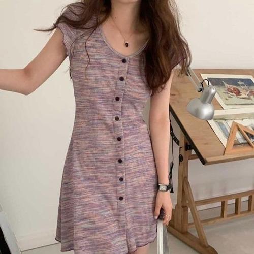 TKX 여성 미니 니트 플레어 원피스 심플 스타일 슬림라인 A라인 중년여성 옷 K35
