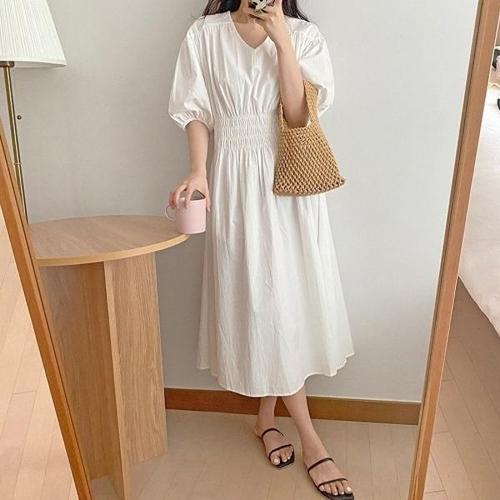 [엄지척]하객룩 허리밴딩 A라인 소매볼륭 단아한 롱원피스_19861627_667501