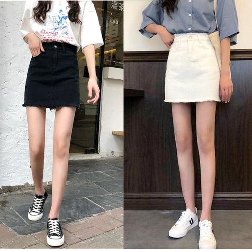 [셀럽하우스]하이웨스트 RTPD0517 A라인 밑단 헤짐 데님 미니 스커트 치마