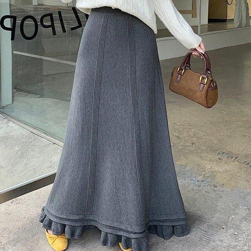 [핑크엘리제]러플 니트 A라인 머메이드 베레넬롱스커트
